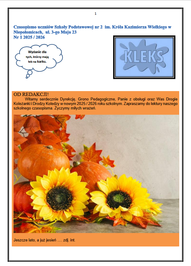 kleks nr 1 2025/2026 Sekretariat czynny: poniedziałek, środa, piątek : 7.40 – 15.30wtorek, czwartek: 7.40 – 16.00 najedź myszką na artykuł i kliknij Śledź nas w mediach społecznościowych Facebook-f Youtube Zobacz film