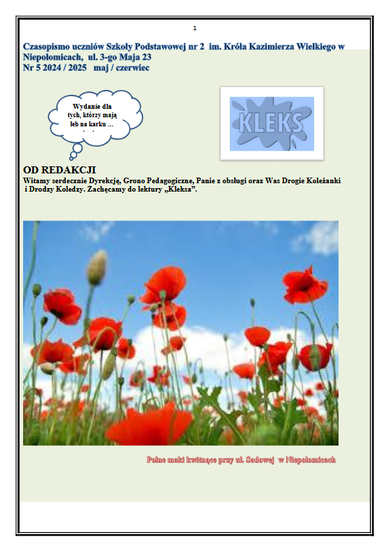 kleks nr 5 2024/2025 Sekretariat czynny: poniedziałek, środa, piątek : 7.40 – 15.30wtorek, czwartek: 7.40 – 16.00 najedź myszką na artykuł i kliknij Śledź nas w mediach społecznościowych Facebook-f Youtube Zobacz film