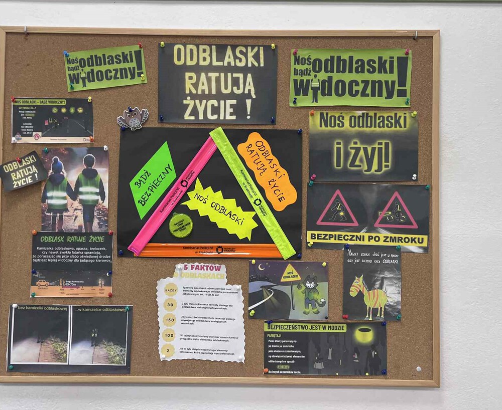 W naszej szkole odbył się konkurs na wykonanie najbardziej interesującej i przykuwającej wzrok odblaskowej gazetki. Celem konkursu było nie tylko rozwijanie kreatywności uczniów, ale przede wszystkim promowanie zasad bezpieczeństwa na drodze i przypomnienie o tym, jak ważne jest noszenie odblasków.