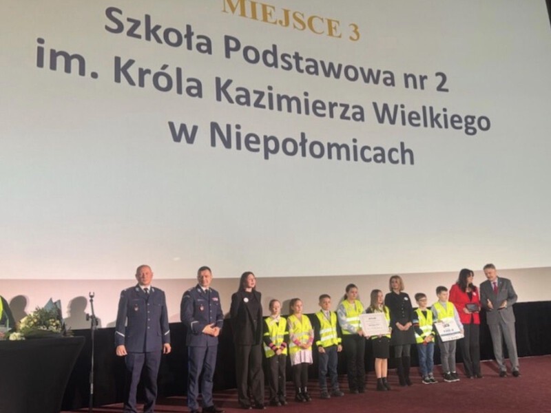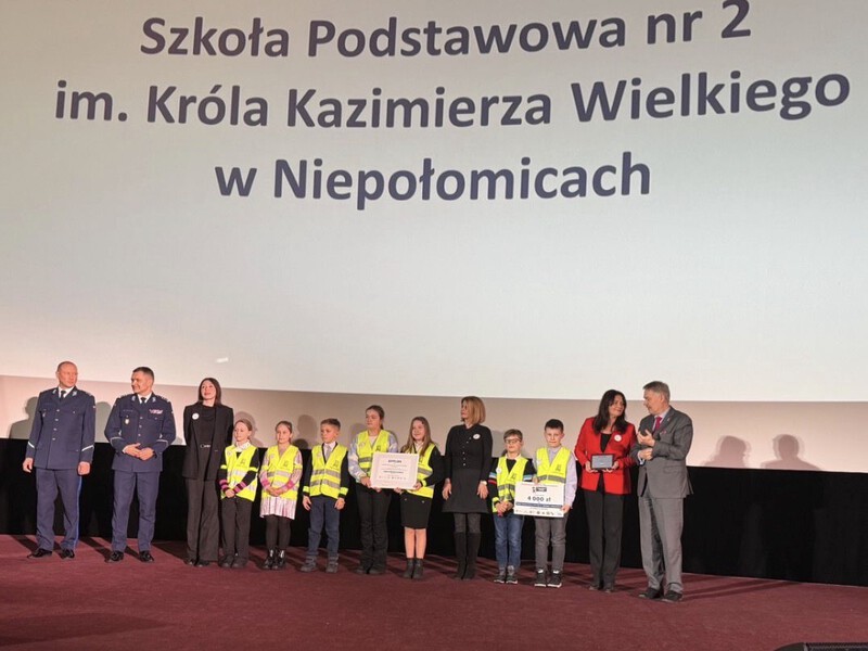 Z ogromną radością informujemy, że nasza szkoła zajęła 3. miejsce w ogólnopolskim konkursie Odblaskowa Szkoła – Małopolska. W związku z tym dyrekcja, koordynatorki konkursu oraz uczniowie naszej szkoły mieli zaszczyt uczestniczyć w uroczystej gali wręczenia nagród, która odbyła się w Kinie Kijów w Krakowie.