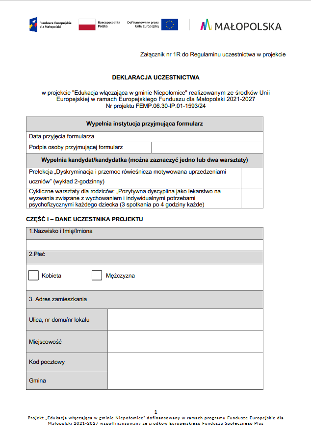Rekrutacja rodziców do projektu unijnego Edukacja włączająca w gminie Niepołomice