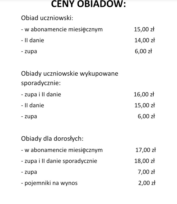 Każda zgłoszona nieobecność ucznia, będzie odliczana w następnym miesiącu.