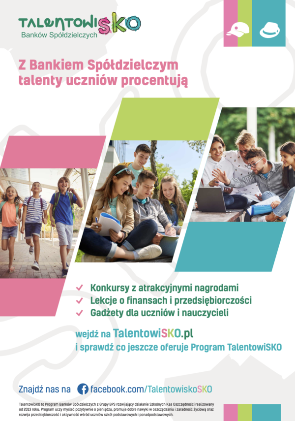W roku szkolnym 2025/2026 nasza szkoła bierze udział w ogólnopolskim programie TalentowiSKO, w ramach którego realizujemy inicjatywę Spółdzielnia Dobrych Serc. Program ten ma na celu rozwijanie wśród uczniów przedsiębiorczości, odpowiedzialności społecznej oraz umiejętności współpracy. W ramach podejmowanych działań uczniowie angażują się w różnorodne inicjatywy, które uczą ich planowania, organizacji oraz działania na rzecz innych. Jednym z elementów naszych działań są kiermasze, które organizujemy, aby wspierać realizację naszych celów i inicjatyw. Ponadto, prowadzimy serię tematycznych zajęć edukacyjnych w czasie odpowiednich lekcji, podczas których uczniowie rozwijają swoje kompetencje społeczne oraz wiedzę na temat oszczędzenia, działania banków spółdzielczych czy podstawowych pojęć ekonomicznych. Szczególny nacisk kładziemy na kształtowanie postaw empatii, wrażliwości oraz otwartości na potrzeby innych. Udział w programie TalentowiSKO to dla naszych uczniów nie tylko okazja do zdobywania nowych doświadczeń, ale przede wszystkim możliwość realnego działania i wpływania na otaczającą rzeczywistość.